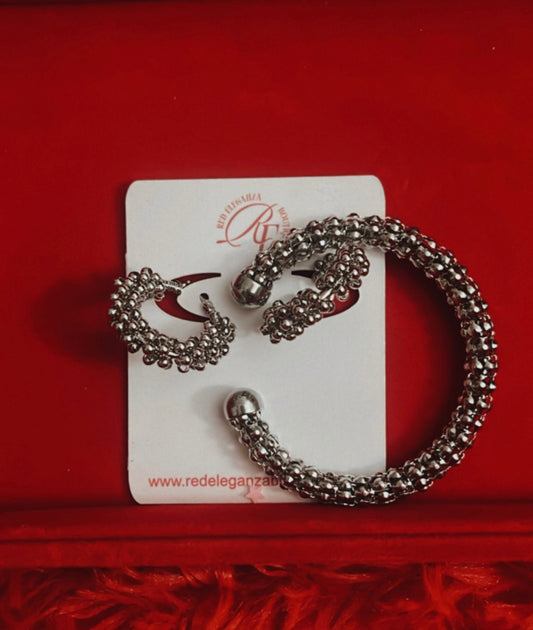 SERENITY BANGLE SET WITH EARRINGS-BUNDLE (SILVER/GOLD)