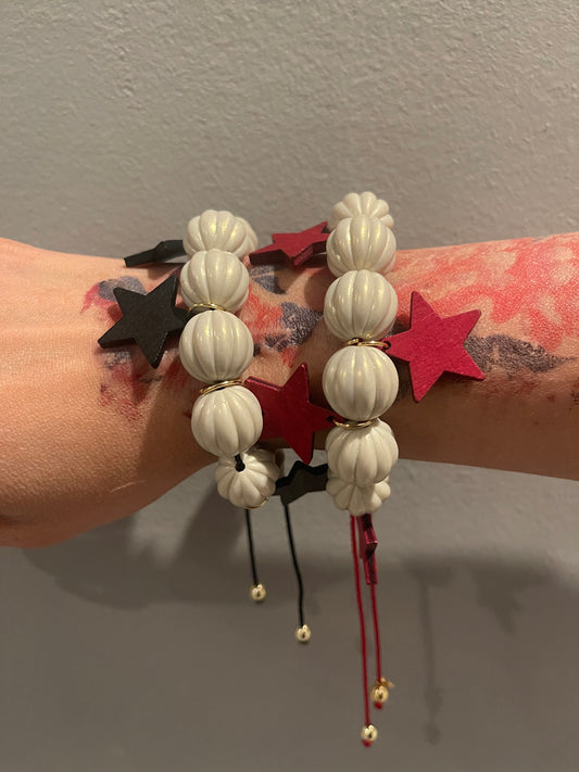 CHUNKY BEADS BRACELET STAR (BLACK/RED STARS)