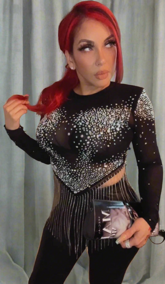 CHIARAGLAM RHINESTONE MESH TOP (FINAL SALE)