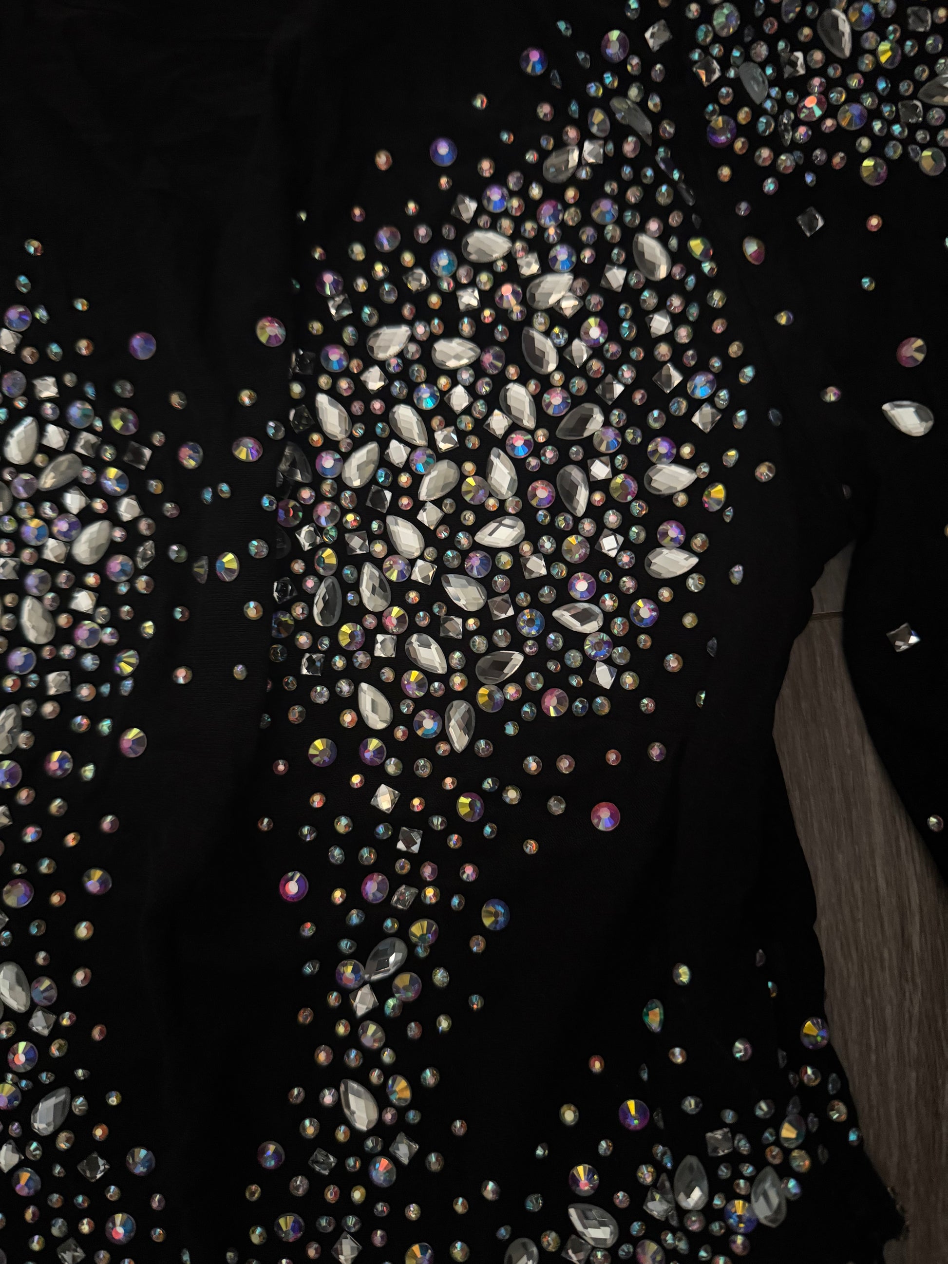 Elevate your evening wardrobe with this striking rhinestone long sleeve mesh top, fringe detail designed for those who command attention. Delicate draped detailing showcases hand-placed crystals that catch light with every movement, creating an effortlessly sophisticated silhouette. The sheer mesh construction offers modern elegance while the rhinestone embellishments deliver that coveted glamorous finish. True to size for a perfect fit. Ideal for special occasions, upscale events, or whenever you want to make a memorable impression Material 95% Polyester, 5% Spandex, Model is wearing size medium.